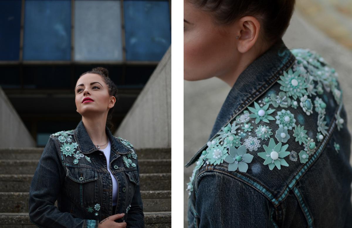 A je to tady. Plocha na kšiltovkách a náhrdelnících mi byla malá a tak přichází jeansové sako dozdobené v mé dílně!!!